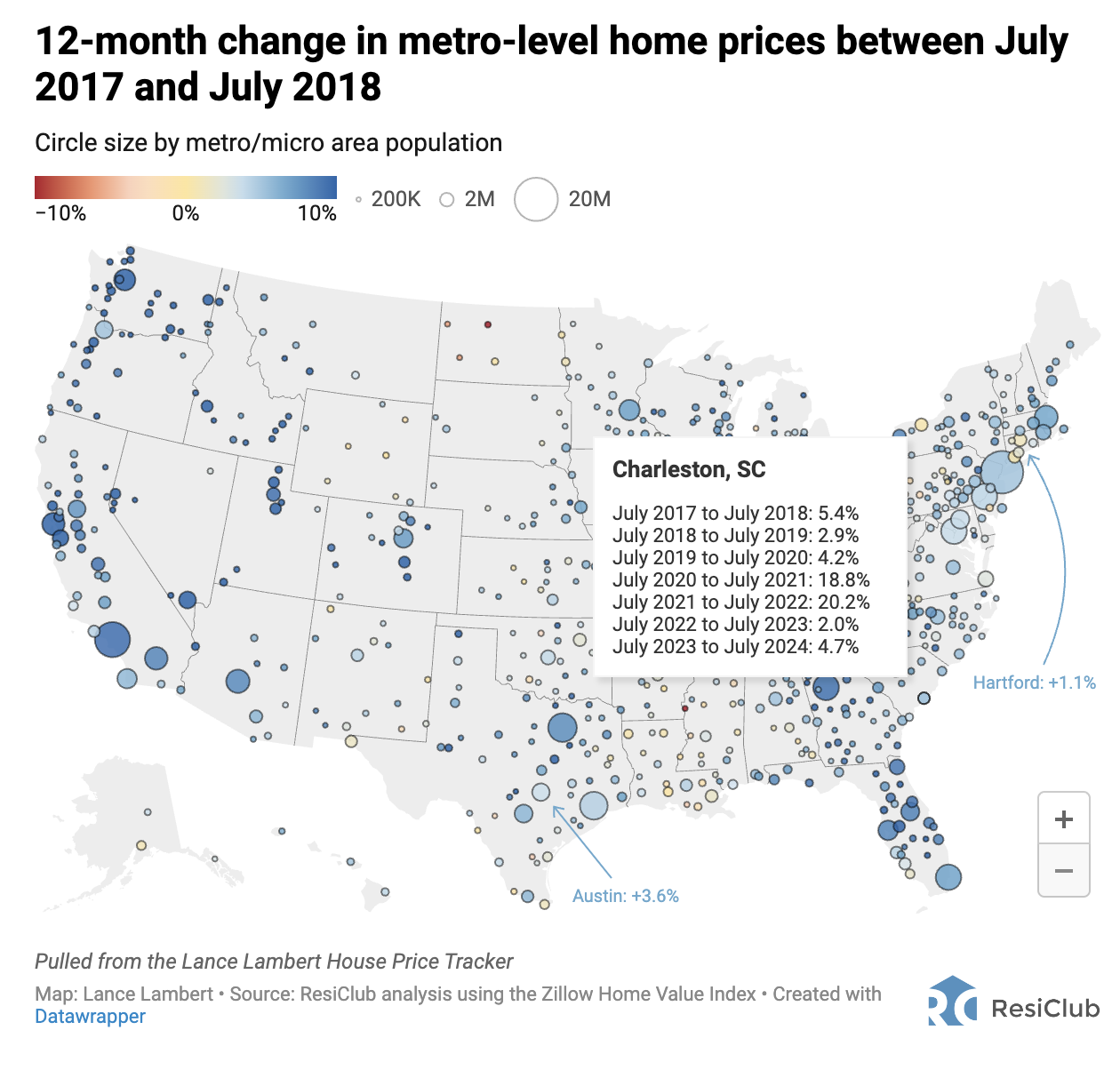 In the same period, Charleston home prices rose 18.8%.