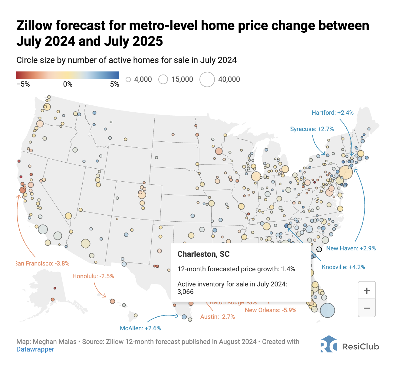 In the Charleston metro area, home prices are expected to rise 1.4% over the next year.